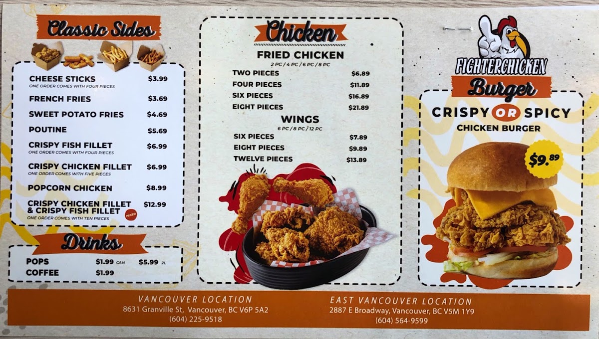 The menu primarily suits quick meals or takeaway orders, with popular items like crispy chicken burgers and flavored wings. It is appropriate for casual dining occasions such as lunch or dinner when seeking fried chicken and related comfort foods. Ordering is typically done via self-service systems, supporting efficient service.